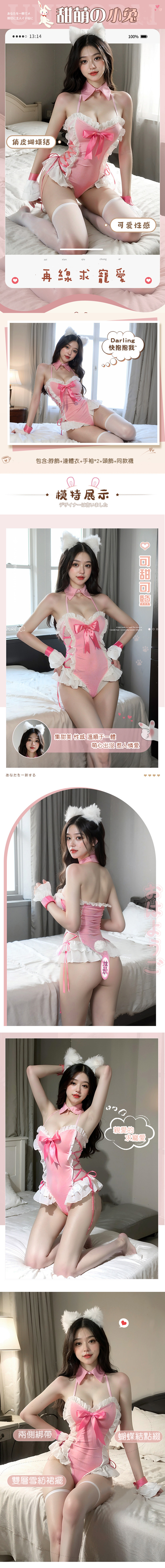 青春可愛女僕風暗釦開襠兔女郎套裝