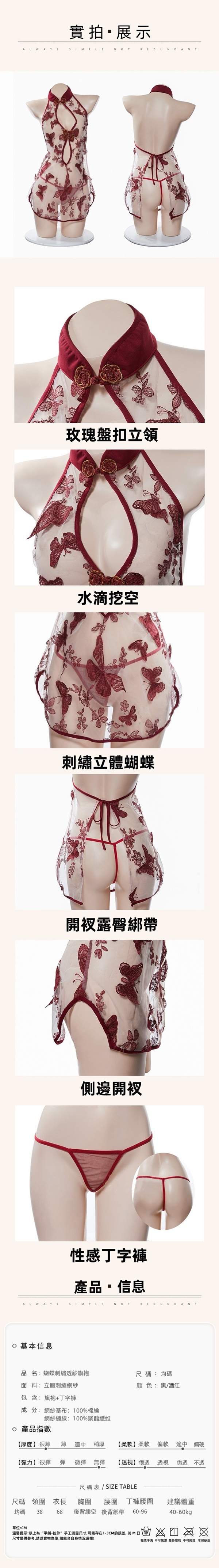 蝴蝶刺繡透紗旗袍兩件組(旗袍+丁字褲)