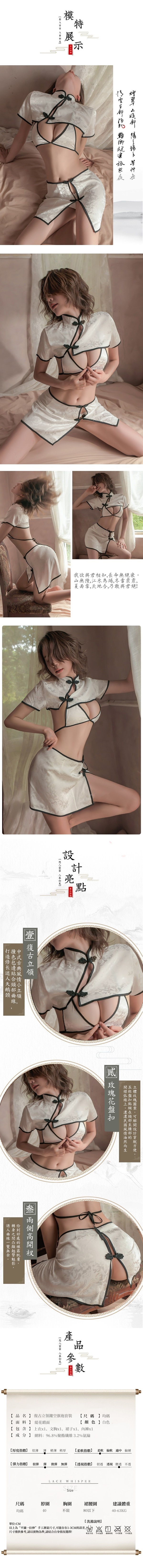 復古立領鏤空旗袍套裝四件組(上衣+文胸+裙子+內褲)