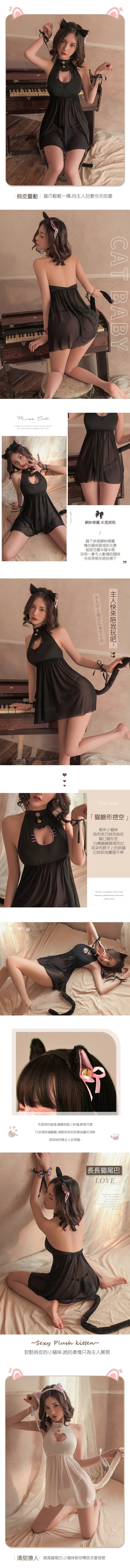 貓臉挖空露乳透膚柔紗鈴鐺髮箍五件式套裝