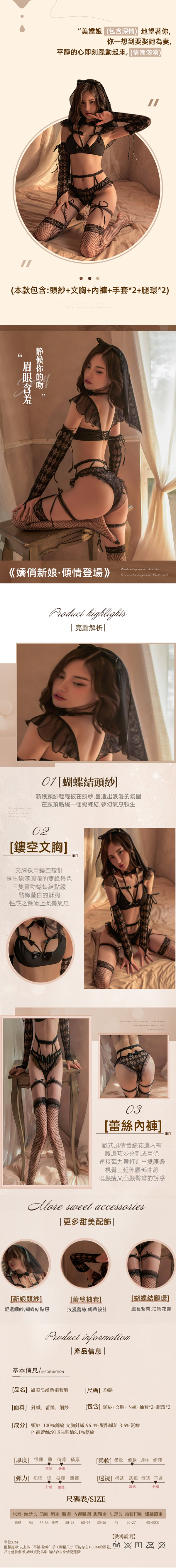 ■內容物:文胸上衣x1、頭紗x1、腿環x2、手套x2、內褲x1