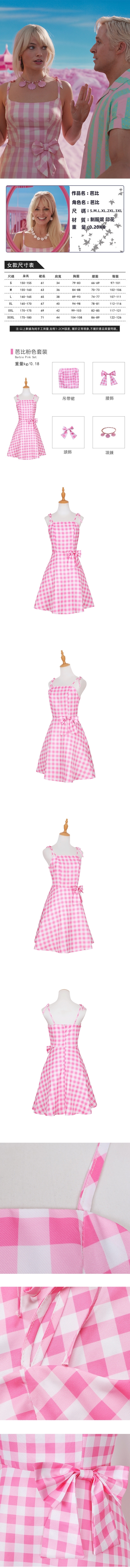 真人版芭比cos服装粉格子吊帶長裙Barbie