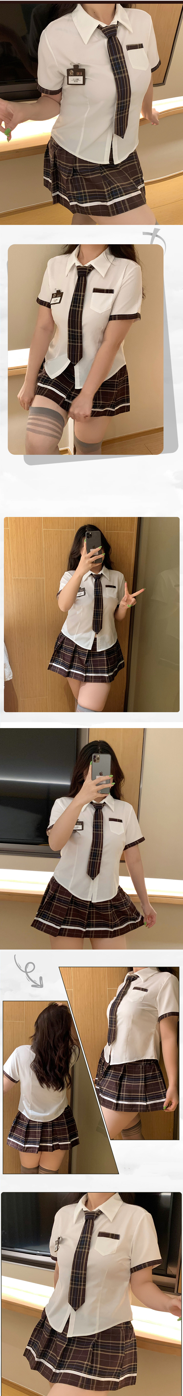 ■商品內容:上衣+短裙+領帶+胸牌+長筒絲襪