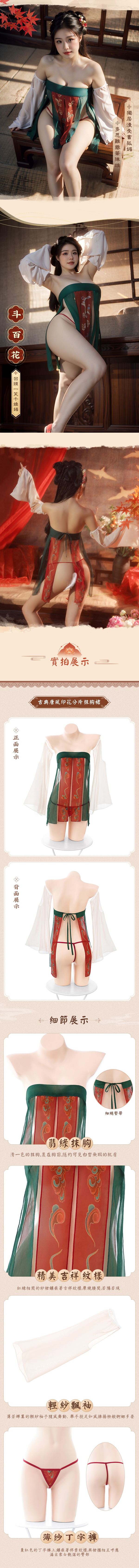 ■商品內容:分片抹胸裙+飄袖*2+丁字褲