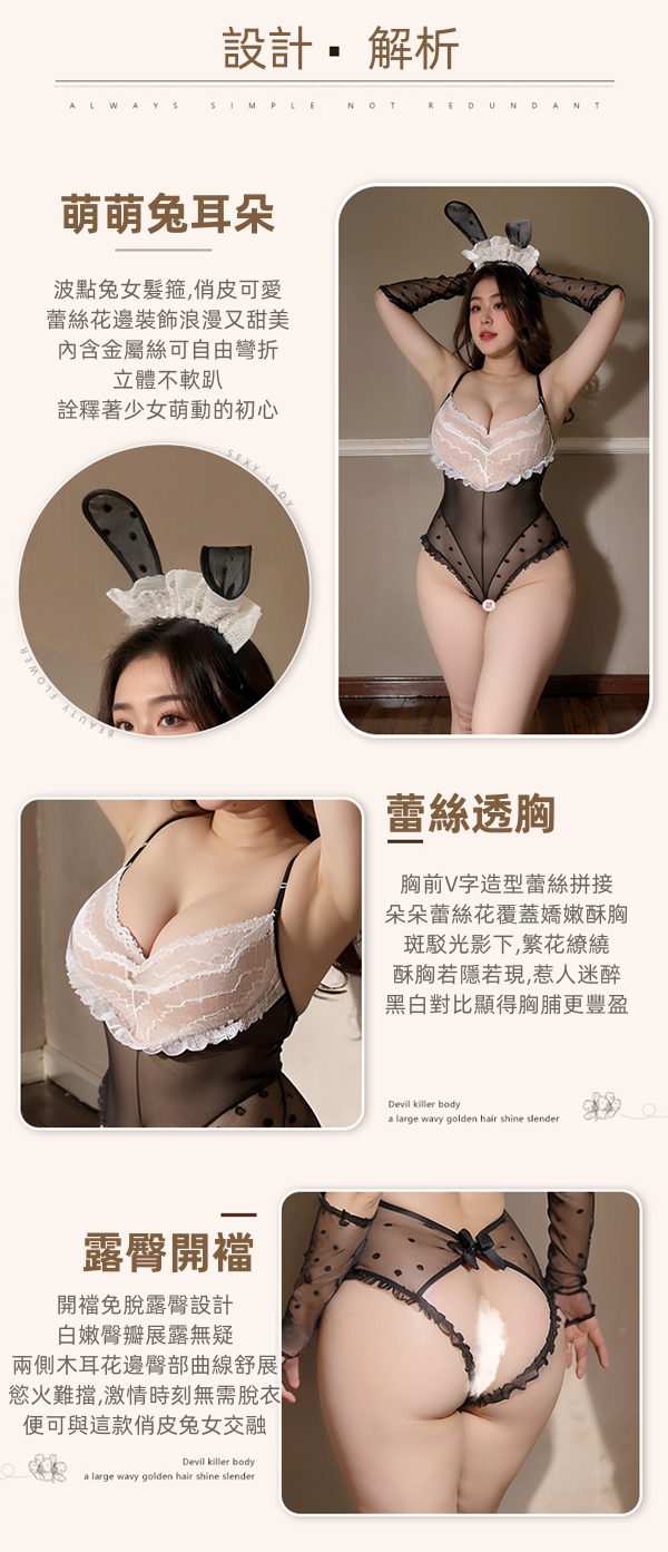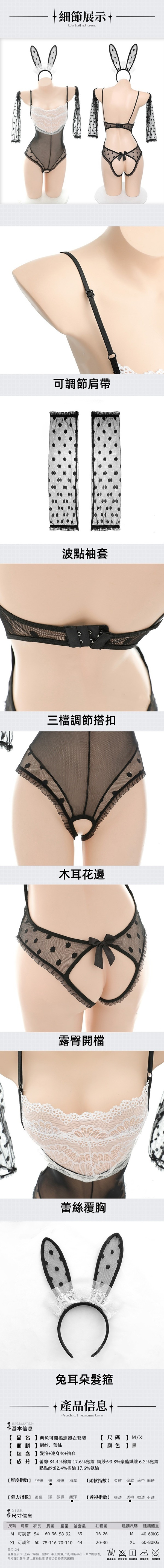 立體兔耳蕾絲透胸波點露臀開襠衣四件組