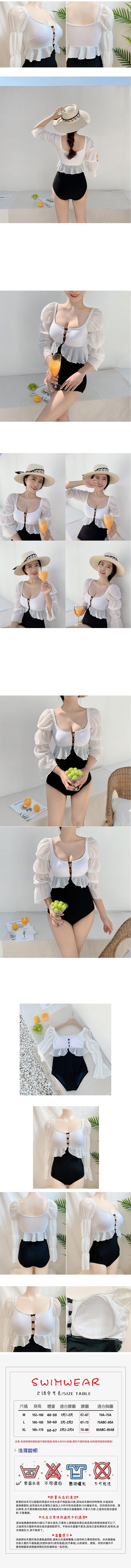 韓版點點公主袖拼接連身泳裝(胸墊)