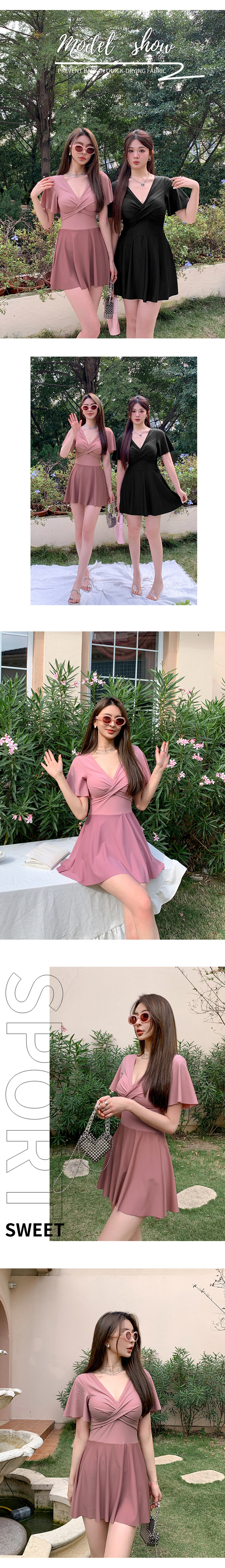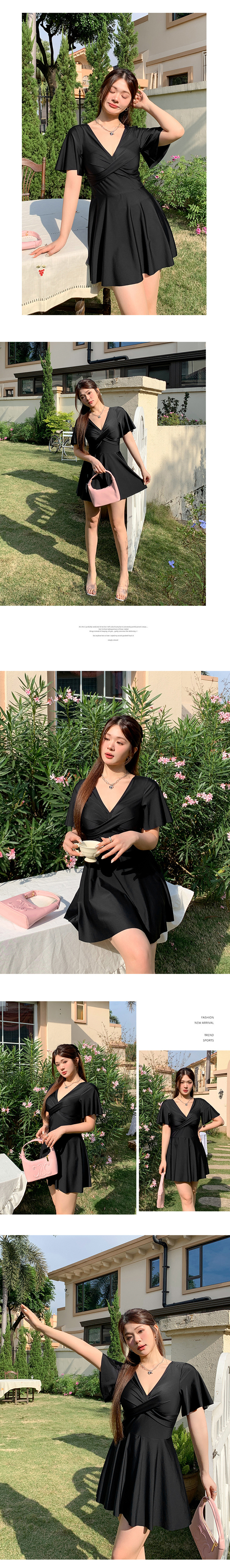 保守簡約裙式連身顯瘦性感泳裝