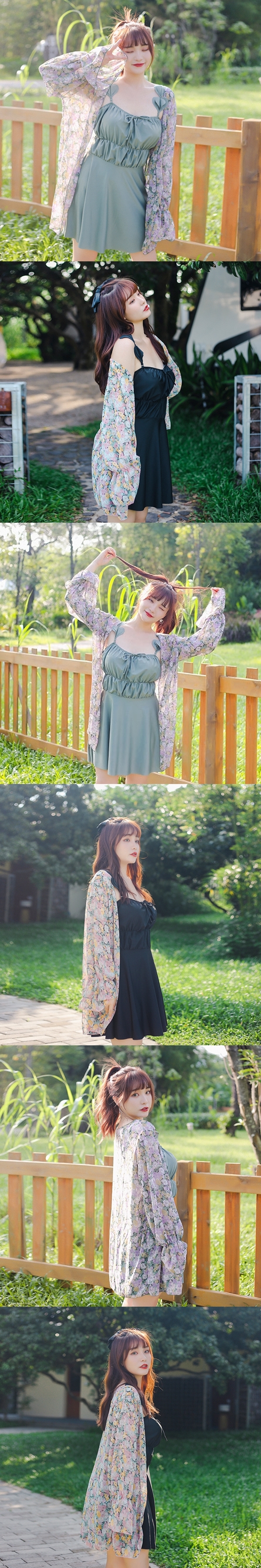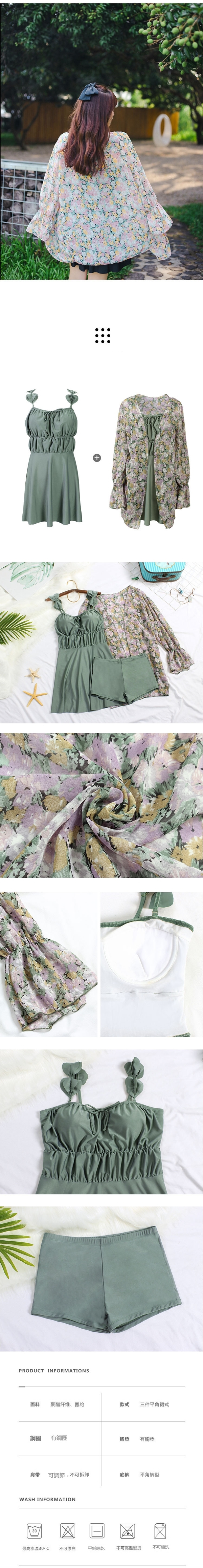 大尺碼韓版遮肚三件套連身裙(吊帶裙+短褲+罩衫)(鋼圈/胸墊)