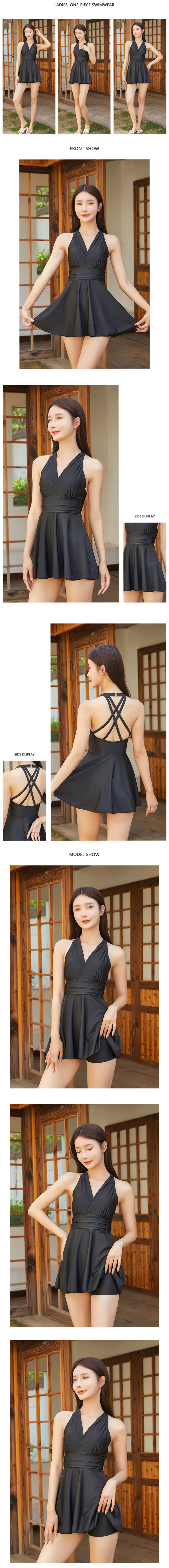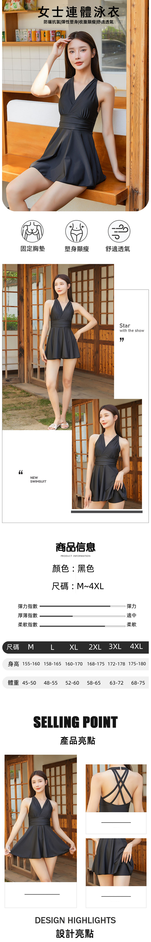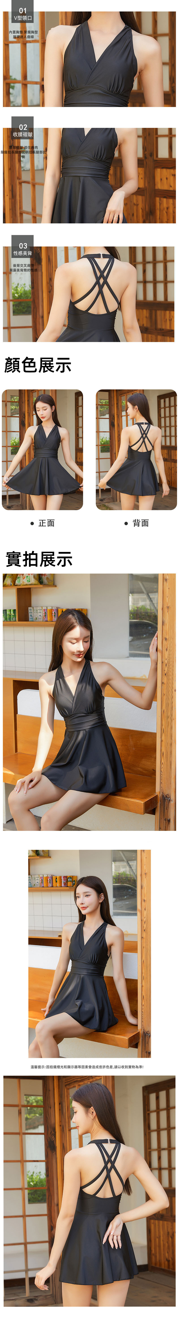性感交叉美背深V鋼托顯瘦連身泳裝