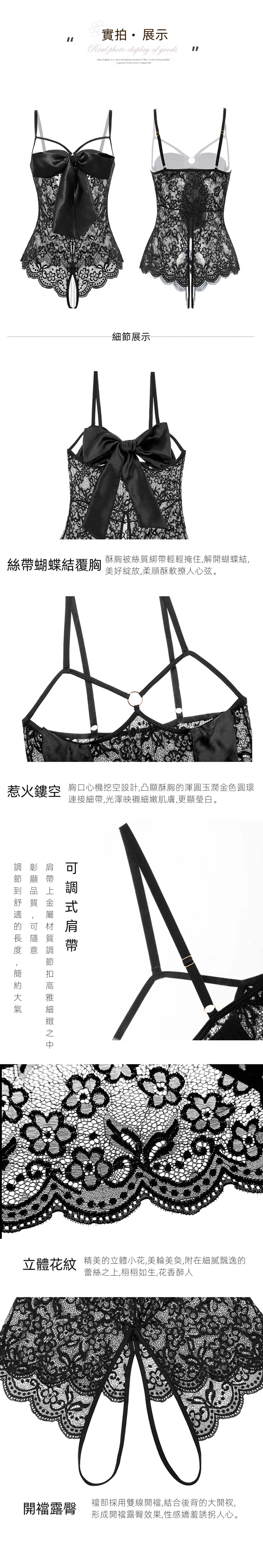 中大尺碼誘惑浪漫半透蕾絲性感露臀連身裝