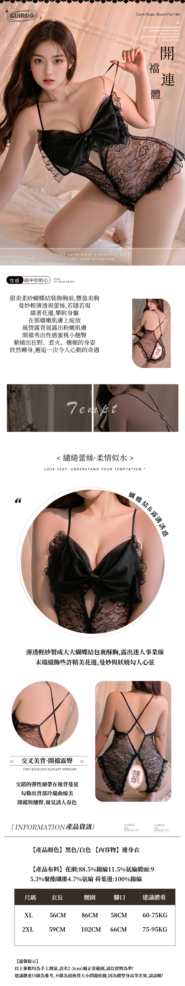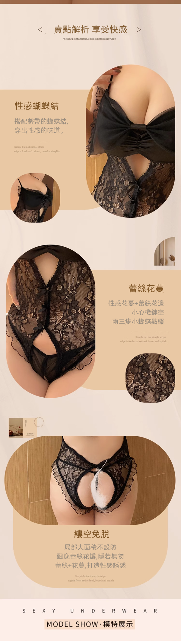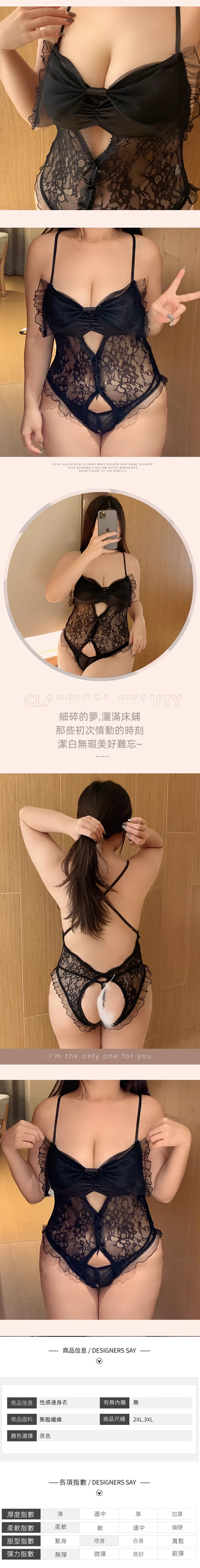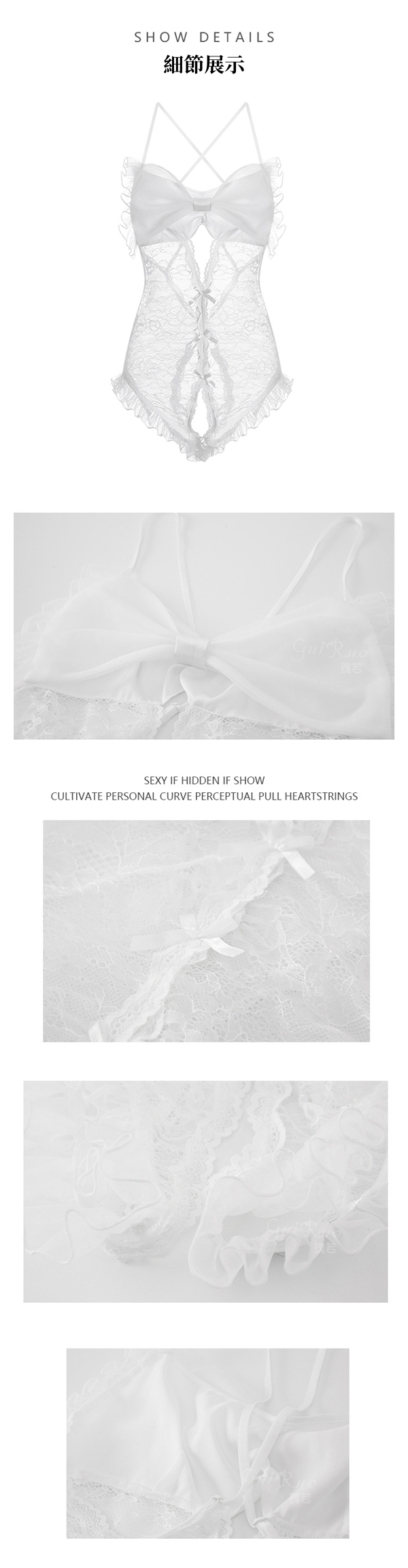 蕾絲網紗性感蝴蝶結開襠連身衣