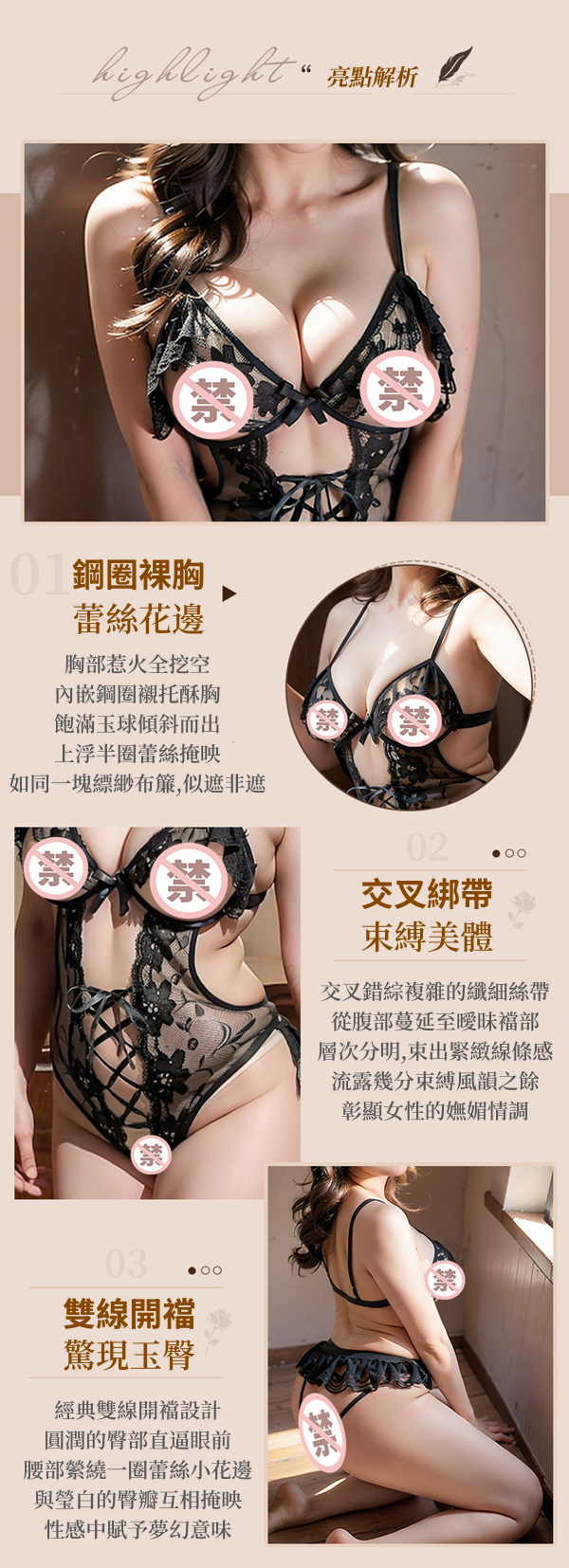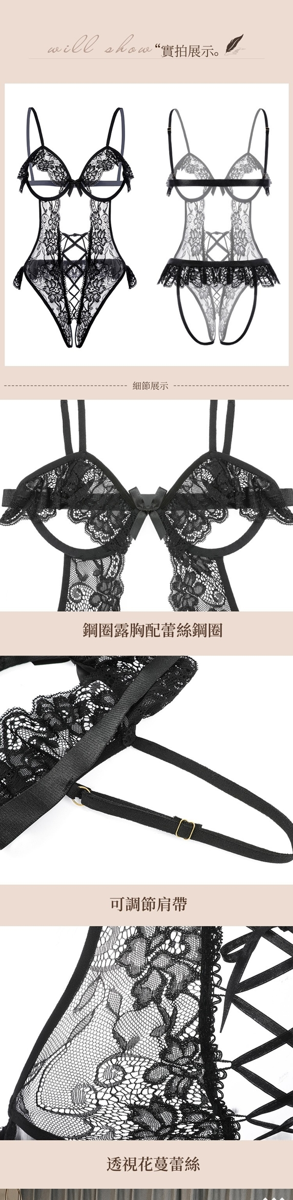 小妖精蕾絲露胸鋼圈開襠連身衣