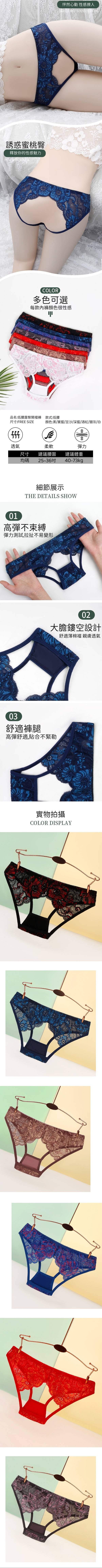 拼色刺繡蕾絲低腰露臀開襠褲