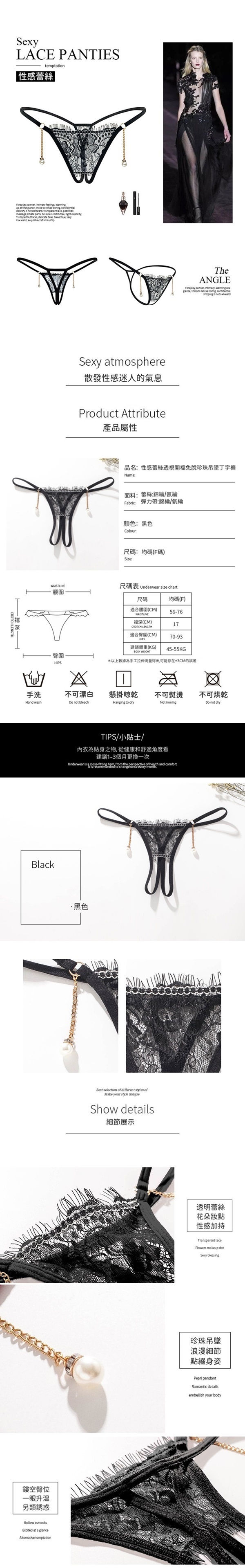 性感蕾絲透視開襠免脫珍珠吊墜丁字褲