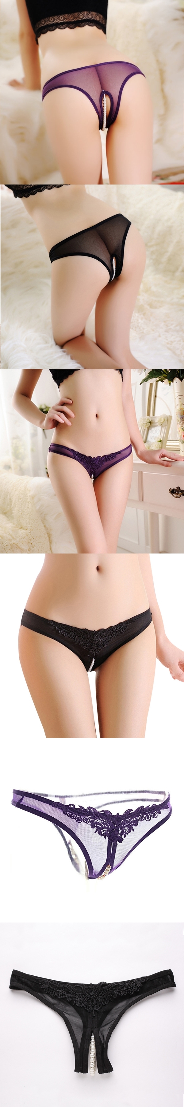 蕾絲刺繡貼膚網紗珍珠開襠T字褲