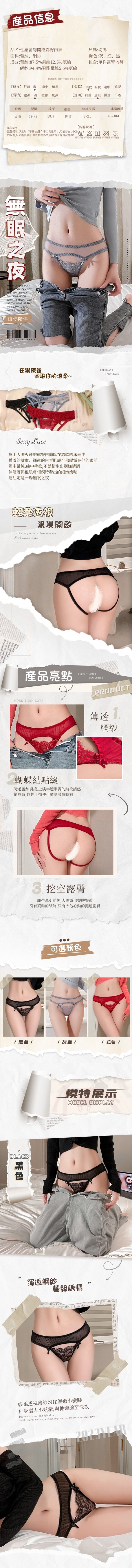 性感薄透網紗蝴蝶結蕾絲開襠露臀內褲