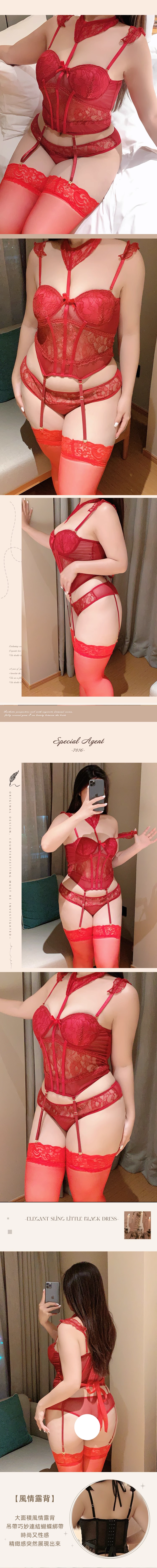 ※ 商品內容:掛脖蕾絲馬甲衣+內褲