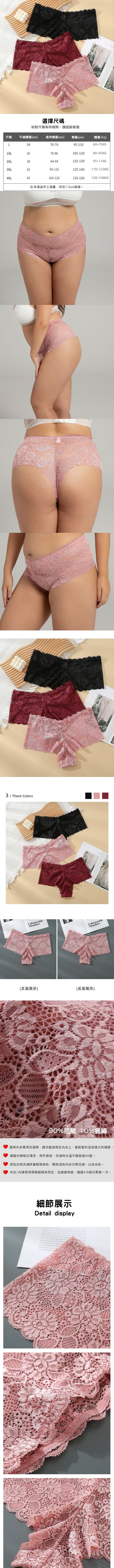 中大尺碼性感蕾絲中腰內褲